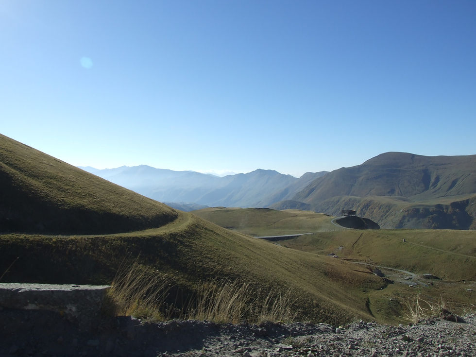 We reden richting de Zwarte Zee en naarmate we verder kwamen werd het mooier, vooral toen we een berg over moesten. De weg werd slechter dus dat was weer lekker slalommen, bij de top was het kilometers onvehard en superstoffig. Hier ging het maar 20km/h. Alles was stoffig, de hele omgeving was grauw, de bomen tot meters hoog ook. We hadden besloten in Tuapse een hotel te zoeken ipv Sochi, dit is goedkoper en dan lagen we eerder op het strand. Maar zelfs met het adres en de tomtom konden we het niet vinden. We vroegen het aan een man, die stapte in om het te laten zien (we zaten Dus me 3 man voorin). Dit lukte ook niet nadat ik was gekeerd op een smal grindpad en toen we vriendelijk vroegen om uit te stappen weigerde hij. Het werd even ongezellig maar we krgen hem eruit met een pakje sigartten als bedankje... daarna hebben we een ander hotel gevonden. Het hotel was een dieptepunt; locatie achteraf, aan grindpad, als je naar strand liep je langs Sovjet flats. We voelden ons niet op ons plaats in zwembroek met handdoek haha. We hebben wel voor het eerst in de Zwarte Zee gezwommen, lekker! En minder zout dan je gewend bent. jammer genoeg waren de bedden maar 1.90m.