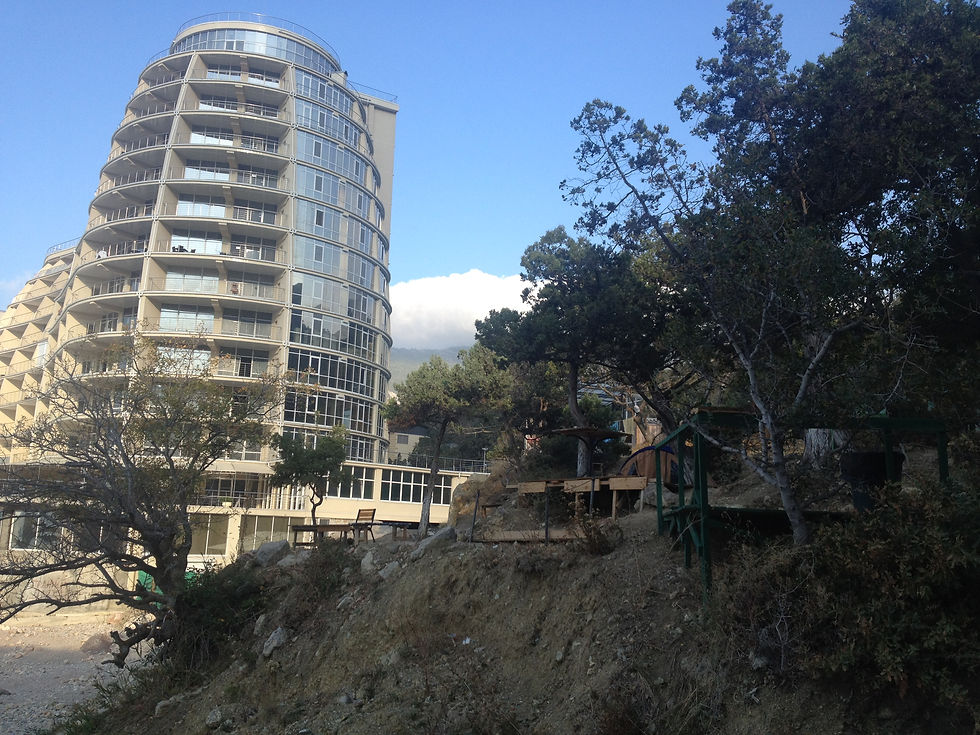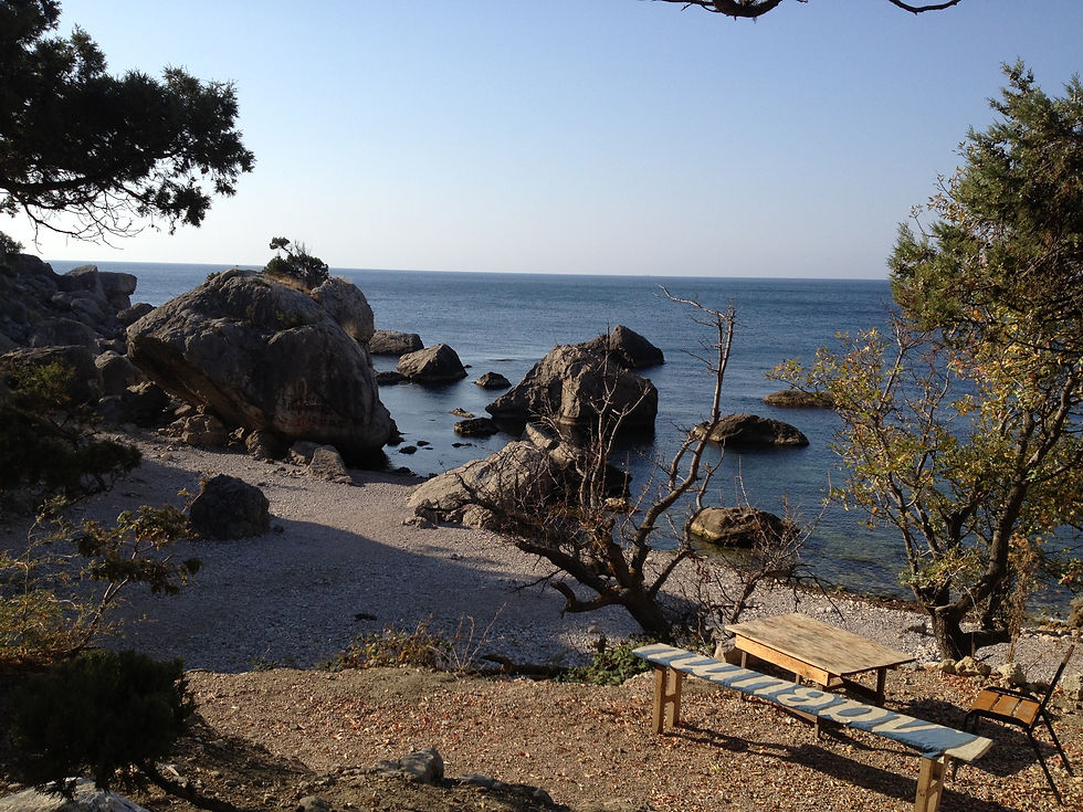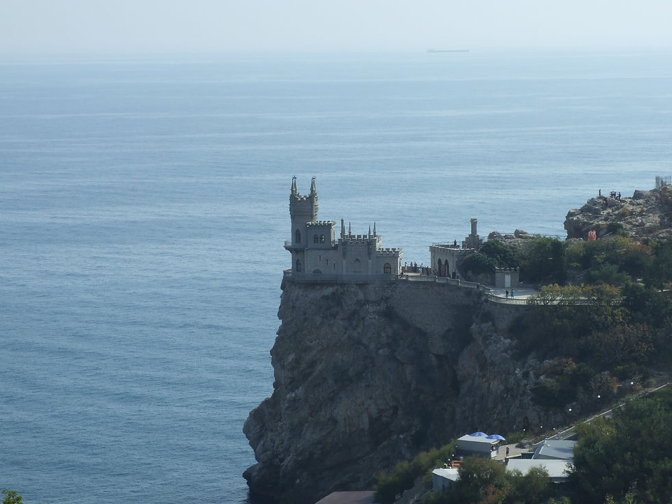 ​Vandaag hebben we de oversteek naar de Krim gemaakt. We waren op tijd bij de veerboot en na een half uur bij de Russische douane mochten we erop en voer hij meteen weg! Ondertussen vroeg een Russische beambte of ik buitenlands geld had want dat was zijn hobby haha. Ik heb hem losgeld gegeven en als dank kreeg ik 10 Ukrainse centen :) De weg over de Krim naar Jalta ging ook soepel, plus dat we een uurtje erbij kregen vanwege de tijdzone. Camping zoeken ging lastiger.. De eerste 2 voorbij gereden omdat we verder wilde zitten, toen 1 niet kunnen vinden, ook niet met taxi. Uiteindelijk in het donker iets gevonden. Een camping op de helling met vlonders voor ca 10 tentjes en een paar hutjes als toilet , keuken en douche, heel billig allemaal maar wel mooi. De eigenaar die begon op te ruimen toen hij ons zag want er waren geen andere gasten. Hij sprak alleen Russisch natuurlijk. Het geheel lag aan zee, strak naast een gloednieuw resort, mooi contrast. De volgende dag heben we een duik genomen en daarna Jalta bezocht, het is een mooie badplaats met veel statige panden. We zijn ook naar het Swallows Nest geweest, dit was vroeger het verblijf van Stalin, Breznjev en Chroetstjov. We konden het eerst weer niet vinden dus hebben we weer de truc met de taxisjoof uitgehaald. Toen we er eenmaal waren was het nog steeds slecht aangegeven en bij het kasteel waren de teksten in het Russisch. Beetje jammer want dan moet je daarna alsnog opzoeken, lang leve Wikipedia. We zijn doorgereden naar Bakhchasarai. De kust is heel er mooi, met het Krimgebergte direct aan zee, is fijn rijden! Het dorp ligt in een kloof tussen de rotsen, hier hebben we het oude verblijf van Kahn bezocht. Hier is het toeristischer en was er meer info. Cultuur afgevinkt.